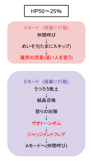 Eモードの結晶召喚のあとは、「ザオトーンボム」「ジャッジメントフレア」があるので、ここも要注意。