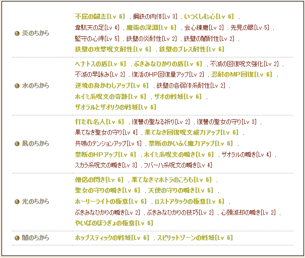 忍耐・逆境・ホイミ系・ザオ系はLv6推奨。