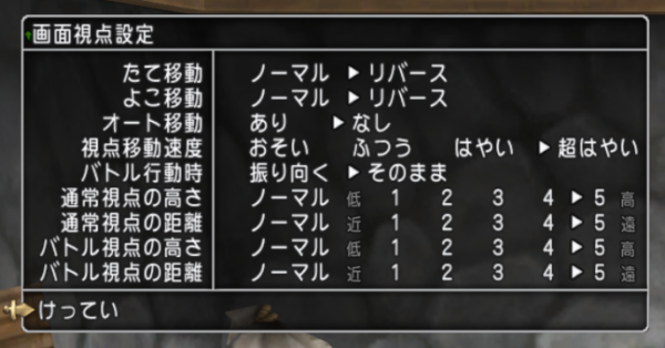 なぜかドラクエ10の視点設定は一般的なゲームと「ノーマル」「リバース」の概念が逆になっています。