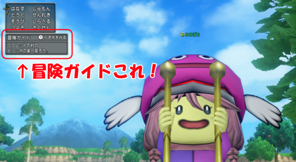メインストーリーの途中までは「冒険ガイド」という機能が使えます。