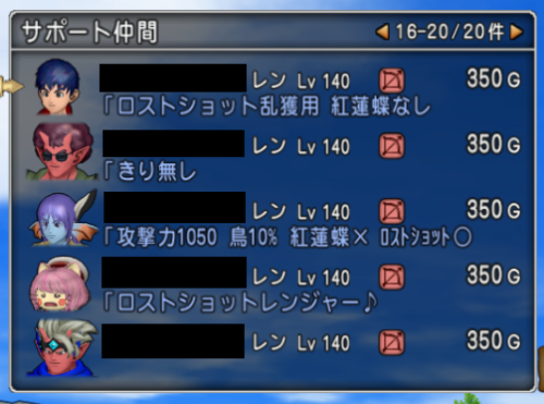 レンジャーはフィールド狩り特化でサポを預けている方が多いので、コメントなどを見て回避しましょう。