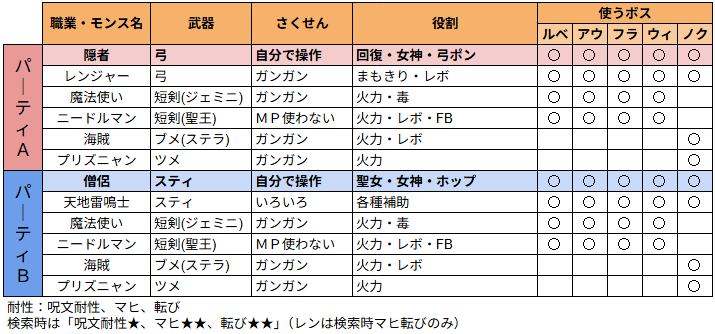 サポやモンスターなどの準備は必要ですが、オートマが苦手な人やマッチングに依存せずサクッと終わらせたい人にはなかなかオススメかなと思います。