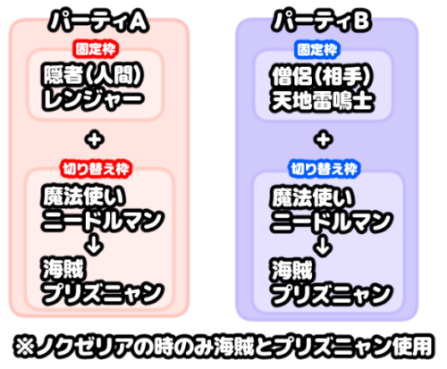 海賊とプリズニャンはノクゼリア用、魔法とニードルはそれ以外で使います。