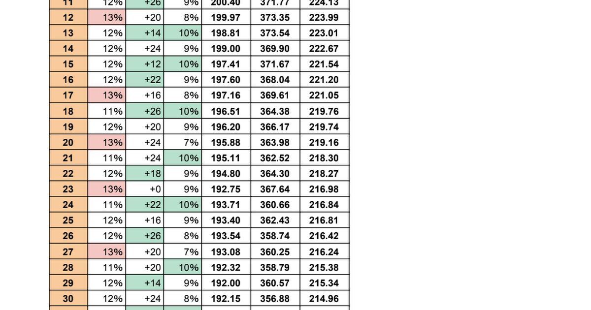 の状態をベースに、ベルトの数値を加算した際の増加量を算出しています。
